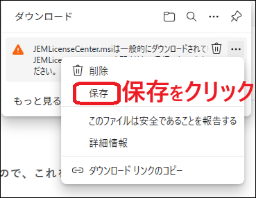 ➃下に表示されたメニューから『保存』をクリックしてください